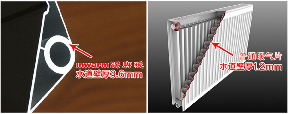銀屋踢腳暖水道短、無焊接點,阻力小,鋁合金材質不易透氧,不易滋生細菌和存積污垢,正常使用無需特殊維護。外表面光滑,灰塵易清理。即便出現故障,只需打開裝飾罩即可檢修,無需破壞墻面地面,某一段損壞僅需更換該段,無需整體更換。其水道壁厚達2.5- 3.6 毫米,是普通暖氣片的 2-3 倍,搭配優質黃銅配件,水質符合要求時可終身使用。